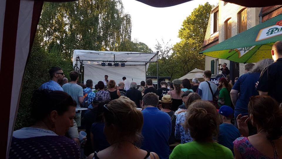 Dass heute mal kein Sommergewitter einen herrlichen Regenbogen an den Elbhanghimmel malt, dürfte ein Novum sein. Trockenen Fußes und voller Tatendrang gehen die Doctoren pünktlich gegen 20 Uhr zum Alarmismus über. Die Stimmen sind geputzt, das Intro läuft, Pichelsteins Fingerpflaster sitzt: Es muss nicht sein, dass das Leben schlecht ist, weil schlechtes Leben nicht gerecht ist (…) Der Beginn des Konzert-Husarenstücks, des ersten Elbetages 2017 und wie eh und je steht ein textsicheres Publikum Pate, um Pratajev, dem Helden einer untergegangenen Landdichterwelt, zu huldigen. Der Senior tanzt an vorderster Front, sorgt für Bulbash-Nachschub, der ganze Platz wird (wie man im Sport sagt) „auf links gezogen“. Im Schein der gelben Mondprinzessin rückt zu „Als das Eis kam“ die Blaue Stunde näher und breitet ihr samtenes Kleid aus. Der letzten Schnapsbar folgt eine allerletzte, schließlich eine allerallerletzte. Noch ein Bühnenabgang für die Galerie, ein kollektiver Doctorenseufzer: Wie schön. Möge der Herzschlag der Zuversicht, auch im nächsten Jahr wieder hier zu sein, kräftig wummern.