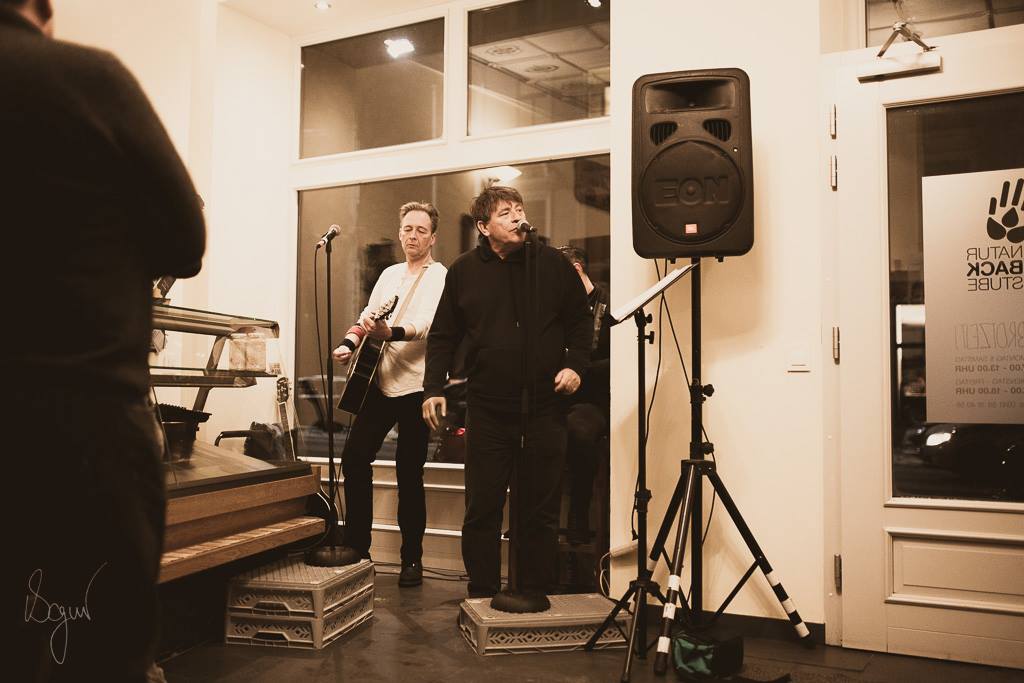 Der Rahmen ist die Leipziger Buchmesse und auf der spielten Makarios und Pichelstein heute vor 15 Jahren und ein paar krummen Tagen erstmals ein paar Lieder. Nachgefeiert wird im April, in der naTo, also dort, wo tatsächlich alles begann. Erst mal einen Wodka Bulbash, ein Stück leckere Pizza, der Soundcheck passte bereits wie angegossen, schon füllt sich die Backstube. Es riecht so lecker nach Backstube! Man könnte stundenlang stehen, würde Sonne und Brot einatmen, und den Schnee draußen vergessen.