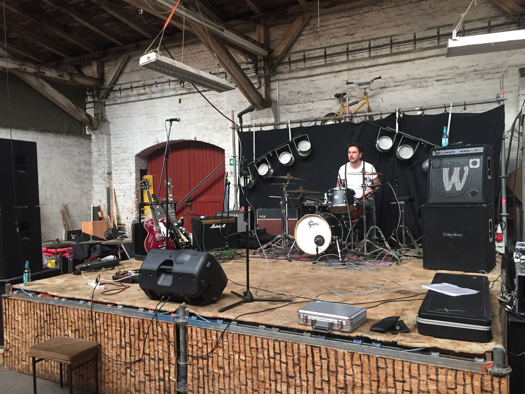 Schwitzen. Die Luft steht, kein Windhauch nirgends, 30 Grad. Ein heißer Sommertag dringt durch alle Poren, drückend und schwül. Erschöpft klingt der Chor der Spatzen in den Höfen, Katzen, Waschbären, Hunde und Igel sehnen sich nach Sonnenuntergang und Blauer Stunde. Gleichermaßen gilt das heute für die Riege der etwa 50 Gäste, die Fürst Fedjas Einladung zum runden Geburtstag in den Plagwitzer Güterbahnhof folgen. Zwei musikalische Leckerbissen fahren sich darunter selbst auf: Die Art und The Russian Doctors. Letztere einzig mit dem Punkprogramm, was derzeit nur 30 Minuten lang ist. Ein Vorteil bei der flirrenden Hitze, ganz klar, denn die staut sich beim Eintreffen zum Soundcheck vom Boden bis zur Decke. Da kapituliert selbst der Großkühlschrank und jedes Mal, wenn ein Bierfass alle ist, muss wer ein neues von weit her aus kühlen Mauern besorgen.