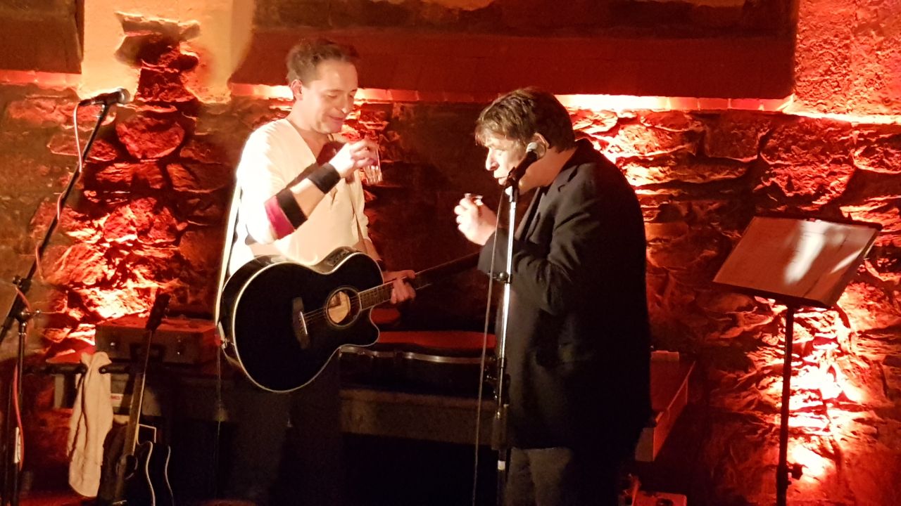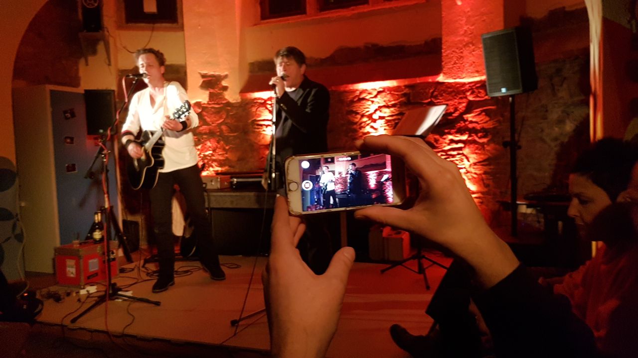 Was nicht immer üblich ist, das geschieht: reichlich Menschen besuchen eine Veranstaltung in Zwickau. Die Kollegin Ulla Meinecke trat neulich gar nicht erst an; 20 Vorverkaufskarten waren eine zu große Leerstands-Hypothek, um Lieder von nassen Katzen zum Vortrag zu bringen. The Russian Doctors knacken diese Marke locker, so werden es um die 50 Gäste am Ende gewesen sein, die den lutheresken Partykeller in eine Pratajev-Schlacht führten. Vorher ist großes Hallo angesagt. Die Lichtenstein-Fraktion, die Nürnberger! Rauchend erweitern Makarios und Pichelstein ihren Wissensschatz im Punkto „Gassigehen mit Hunden in steinbefallenen Schuhen voller Kacke“. Der gemeine Hundehalter benötigt, zumindest ist es in Lichtenstein so, dergestalt ein gesondertes Paar Schuhe, das hinterher nicht auf flauschiger Synthetik wandelt.