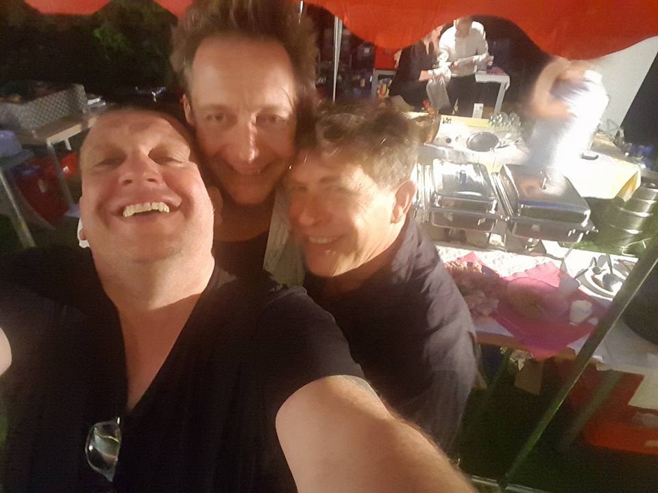 Ein Hallo ans Kaufland zu Pirna! (Ausruf der Doctoren nach 30 Minuten zähfließenden Baustellenverkehrs) Dort wird ein Signierstift erstanden; Gastgeber Uwe bestellte einen halben Karton Russian Doctors-Tonträger und die werden nun wie verabredet unterschrieben. Weiter geht’s, die Navigerätschaft ist für den Schlippenritt zum Elbersdorfer Rittergut scharfgestellt. Es wartet: das Empfangskomitee, ein imaginärer roter Teppich, eine jubelnde Dorfbevölkerung in Persona des ehemaligen Technikers der Gruppe Electra (unverwüstlich: „Die Sixtinische Madonna“, „Tritt ein in den Dom“, „Der grüne Esel“ feat. Kurt „Zungenkuss“ Demmler). Dann rein in den guten Garten, der Festanlass wird mannigfaltig beschrieben, u.a. geht’s für den Gastgeber bald in die verdiente Pension. Während bereits mit Kaltgetränken versorgte Doctoren die Bühne spielfähig schrauben, erkundet Fürst Fedja die Unterkunft. Ein umliegendes Fachwerkhaus anno 1809, sehr behaglich, Pichelstein wird sich spät in der Nacht darin noch an den Song „Beim Bücken“ erinnern müssen – denn um 1809 waren die Hausbewohner eben keine 1.89 m groß.