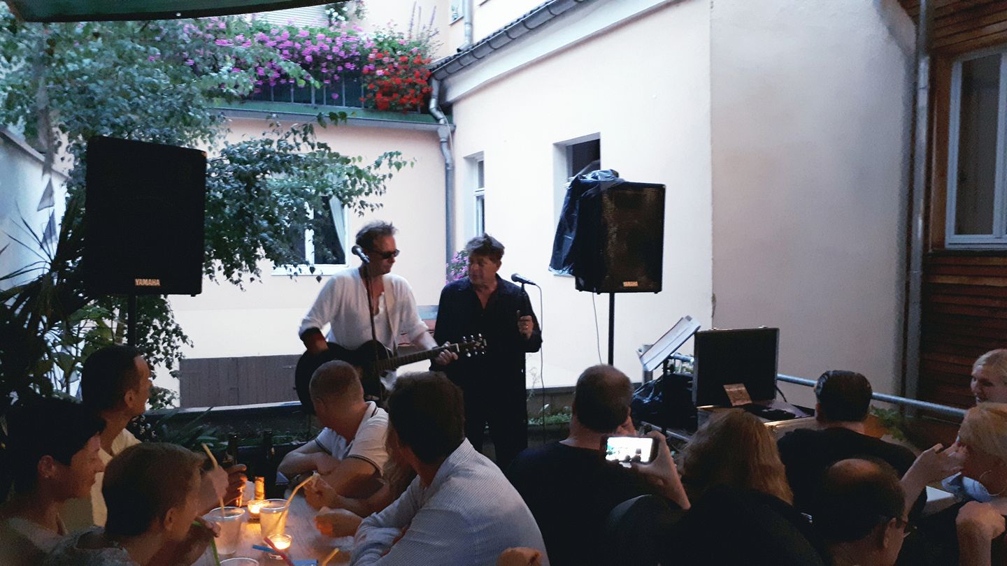 Hofnacht in Pirna! Das Superlativ des Jahres. Es ist wieder soweit. Noch scheint die Sonne über Sachsen, Fürst Fedja liefert Vodka aus, Makarios und Pichelstein sind bereits vor Ort. Im Kreise Ulf wird nach Sichtung des Regenradars besser mal eine Plane übers Anwesen gezogen. Beim Soundcheck dann die ersten Tropfen. Der Himmel verfinstert sich, daraus wird nur ein Schauer, mehr nicht. Pirna jubelt und die Elbe bleibt im Dampferbett. Der Schnaps für die weiteste Anreise geht heute nach Franken, knapp dahinter folgt die sich bereits im Zustand höchster Lebensfreude befindliche Pratajev-Fraktion Finsterwalde. Rasch einen Bulbash, so das Motto des heutigen Tages. Die Folgen sind am Ende als durchaus interessant zu werten. Vorweggenommen: Gitarrenunterricht bei Doctor Pichelstein hätte fast zu einem Sturz in die Tiefe geführt. Auch darf die ofenreiche Zuführung eines Brot-Wurst-Schinken-Konglomerates auf einem Wandbild mit gläsernem Rahmen nicht fehlen: Bereits auf 20 Minuten Backzeit, 220 Grad justiert, verschwand das Werk samt Bild im Bratschlund. Pichelstein konnte überzeugend einwirken, schaltete das Gerät ab und verwies auf noch vorrätige Soljanka.