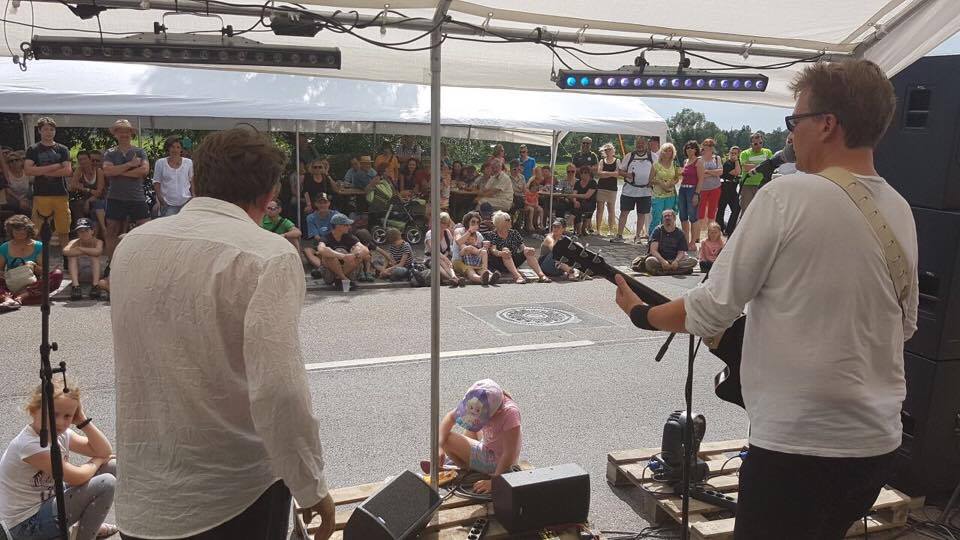 Auch heute ist schnell das neue Langsam auf der Erlenholzigen; Makarios flüchtete ein ums andere Mal und bleibt raffinierter Weise mitunter lange weg. Das geht selbst einem gelenkgeschützten Schnellgitarristen an die Substanz; als beide Doctoren wieder vereint in die Mikrofone singen, geht’s mit Normalgeschwindigkeit weiter. Würde Pichelstein bei jeder Temposünde in die Bandkasse zahlen müssen, jungejunge, das gäbe ein Grillfest am Jahresende! Nun gut, da die Spielzeit heute begrenzt ist, werden noch rasch ein paar Katzen in den Wind gehangen, Schlips aus Lurch drum und fertig. Das Nachbeben lässt nicht lange auf sich warten, doch um den Wunschblock zum Wohle der nächsten Combo nicht über die Maße zu strapazieren, endet das heutige Stelldichein und Tanzdichmüde mit einer sehr tragischen Schnapsbar. Lange hat man sie noch wurmend im Ohr und die lieben Konzertkinderlein werden sie in der Kita tags darauf lautstark anstimmen.