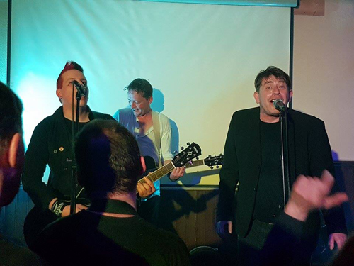 Gleich zu Anfang des Sets wird wild bis desaströs getanzt und mitgesungen, so dass Makarios im Konzertpart „Landleben“ einen Flüssigpreis für den besten Vorsänger und/oder Publikumsgitarristen auslobt. Um es vorweg zu nehmen: An diesem 02. Dezember 2016 wird Stephan Schreiter (Sektion Torgauer Brückenkopf) in den highligen Doctoren-Orden aufgenommen. Für den derart genial und fehlerfrei vorgetragenen Gitarren- wie Sangespart „Gefesselt“ gibt es am Ende vom Lied eine Flasche Kräuterschnaps aus dem Hause Kaktus. Wohl bekommt’s.