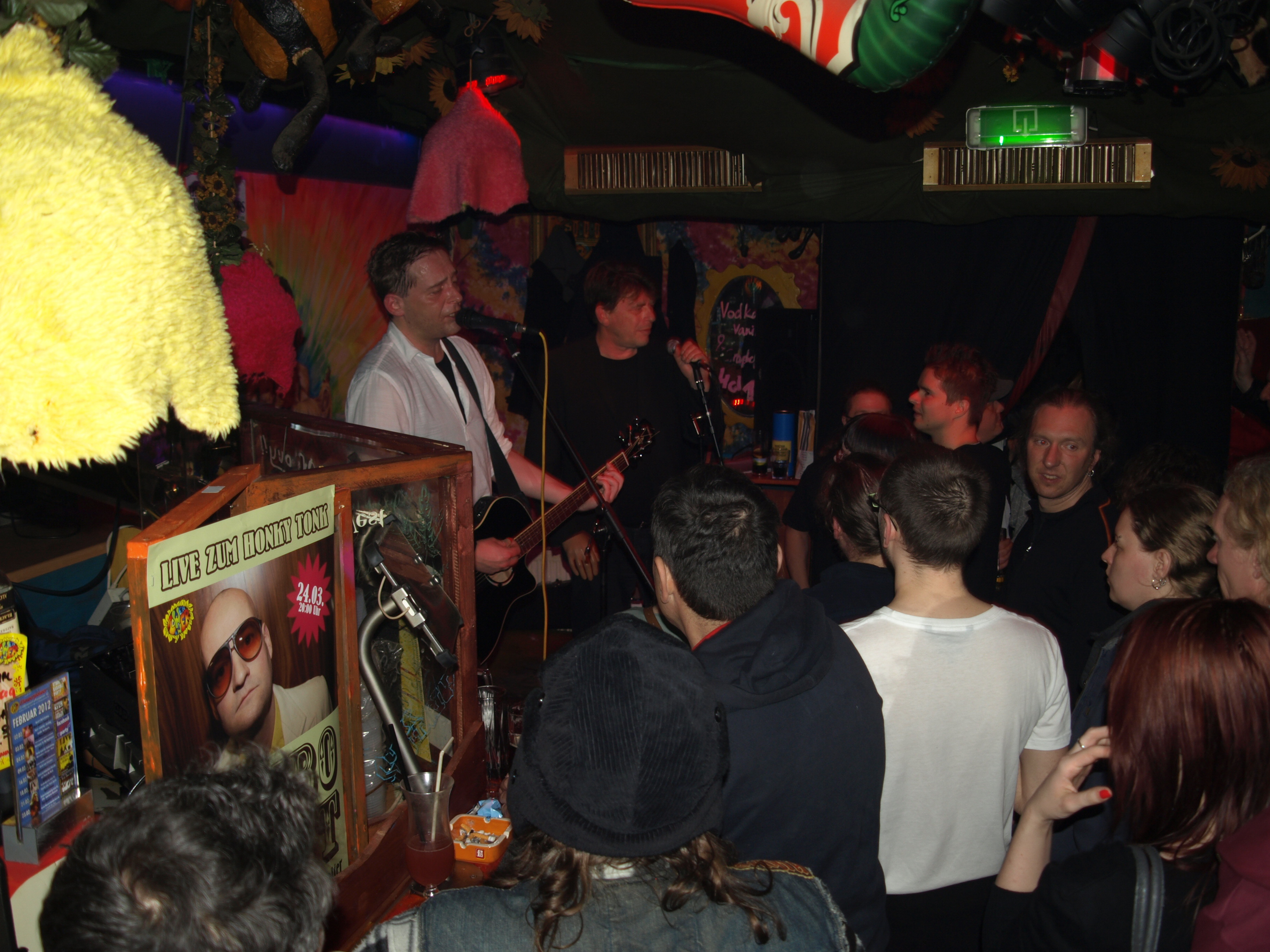 Die Starterklappe fällt um 22 Uhr; das Publikum trollt sich bereits vor die Bühne, in den Ecken. Es ist voll, heiß, nass und siehe da: Durch die Tür schreitet er hinein, der Herr Durst, klopft Fürst Fedja aufs Shirt, ruckelt synonym an beiden Doctoren. Er deutet auf die errötende Schnapsbar und schon fliegt er von dannen. „Wodka Wodka glasklar und rein“ wird darunter gesungen. „Wodka Wodka so muss es sein“. Schon füllen sich die Gläser, reichen bald erste Trinkdeckel an den Tischen nicht mehr aus, so strichelvoll sind sie. Die heutige Reise durchs Pratajevsche Wirken birgt durchaus sauflustige Eskapaden. Kein Wunder. Die neue Platte der Doctors steht kurz vorm Durchschreiten des roten Vorhangs. Dass es sie am heutigen Abend noch nicht gibt, ist zwar schade, lässt sich aber nicht ändern. An so einem Werk arbeiten bildgesprochene Rädchen und wenn eine dieser Rundungen geckert, nun ja, dann dauert es eben ein bisschen á la Haarmann-Style („Warte warte noch ein Weilchen…“).