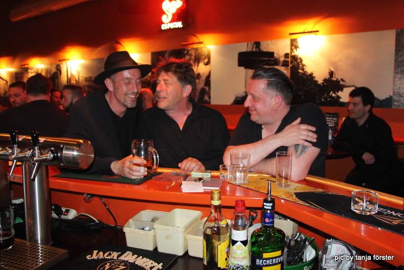 Es folgt die Speisung der Rüsselhunde, folgen „Kleine“ und „Keine“ Schnäpse (Kleine = Glas Dreiviertel gefüllt, Keine = Glas halbvoll. Hinzu addiert sich im Doctorssprech: Ein Schnaps = Glas bis zum Rand gefüllt, schwappt bei Zittrigkeit über). Voll ist der Bulbash-Garten, im Club sind die besten Plätze eingenommen. Den Preis für die weiteste Anreise erhält einmal mehr Genosse Peter aus Wismar, zum Stargast des Leipziger Ostens wird der rasende Ulf erklärt. An seinen Fersen heftet zunächst eine trüb blickende Gästin der Monte Negro Bar, die sich im weiteren Verlauf des Abends Herrn But zuwenden und im noch weiteren Verlauf ein weibliches „Idyll“ aufs Parkett legen wird. Gemeinhin scharrt man mit den Füßen, kann losgehen, Makarios und Pichelstein schwören sich mit einem hochemotionalen Pratajev-Huddle auf die Party ein („Noch eine rauchen, mein Doctor“), dann ist Showtime!