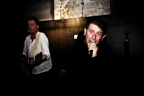 Die Bühne wurde bereits tags zuvor aufgebaut, das musste so sein, denn Doctor Pichelsteins früher Pfingstsonntag fand zu großen Teilen im Matatu-Studio des Dr. Jeans statt. Die nächste Doctors-Platte wird gerade stürmisch aufgenommen. Nach getaner Arbeit geht’s gleich in den Club. Herrlich ist’s, göttlich ist’s. Belohnung für wunde Gitarrenfinger bietet die Schnapsbar feil. 80 Gäste sind geladen, nach und nach tropfen sie ein. Tropfen deshalb, da es draußen phasenweise wie aus Kübeln schüttet. Im Schwatz kommt man sich näher – es folgt die Rede eines Schulfreundes über die Kernkompetenzen des Olaf, die Beschreibung glücklicher, manchmal gar verrohter Vergangenheiten. Markenzeichen: Verlässlichkeit. Und alle stimmen ein. Nächster Programmpunkt: Ein Geburtstagsgeschenk namens Kabarett. Klar, mit dem gefürchteten „leichten Augenzwinkern“ unter dem an der Bar nichts bestellt werden darf. „Ich geh jetzt zur Tanke“, ruft darauf ein Herr in den besten Jahren, reißt die Tür auf und verschwindet im Regen, Ehefrau oder Freundin hinterher. Dann: Olaf auf den Brettern, die die Welt bedeuten. Olaf am Mikrofon. Er sinniert, blickt klug, charmant und feinsinnig auf 50 Jahre zurück, eröffnet mit einem verschmitzten Lächeln das Buffet. Es wird geklatscht, dann ruckeln die Stühle und es heißt: Essenfassen. Der Kulinarik sind keine Grenzen gesetzt. Feldfrüchte, Meerestiere, Weidenbewohner: eingesammelt, um vom Volk verzehrt zu werden.