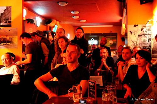 Fürst Fedja veräußert derweil Milzbrand und frische Tonträger, da dauert es noch eine ganze Stunde bis das Konzert überhaupt losgeht. Knackevoll ist’s. Selten wünschten sich zwei Kellnerinnen durchaus mehr als nur vier Hände zu haben. Doch mehr sind es nicht und so dauert die Versorgung der Gäste etwas länger. Die beiden meistern ihr Tagwerk fürwahr wie zwei Festzeltbienen, jedem Durst wird der Garaus gemacht. Ein Zustand, der sich noch lange über das Konzertintro „Leipzig West“ hinzieht.