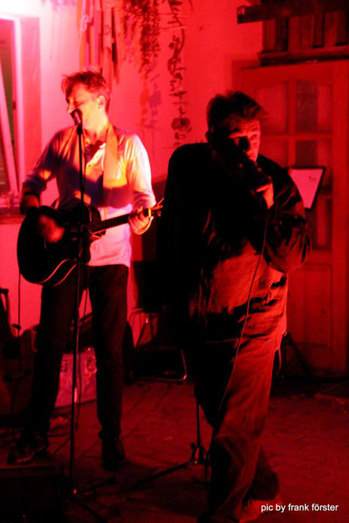Heute beginnt „Parcours 2015“, die Sommerausstellung im Mischhaus zu Leipzig-Stötteritz öffnet ihre Pforten, Künstler diverser Sparten trugen allerlei Elemente bei. Dass ein Parcours „eine Strecke mit vorbereiteten Hindernissen“ bezeichnet, wird synonym zum Beispiel durch in den Boden eingelagerte Badewannen verdeutlicht. Das Cafe Westen-Personal stemmt den kulinarischen Part – es lodert der Grill, fleißige Zapfer schenken kühle Getränke aus und mit letzter Kraftpuste zerfetzte Zeljko eben erst die liebevoll angerichtete Gartenbühne. Als die Doctoren eintreffen, flattern die Planen im Wind. Also muss umgedacht werden. Der Auftrittsort wird in den Eingangsbereich verlagert. Nun darf es nur nicht regnen. Wird es auch nicht, Glück gehabt.
