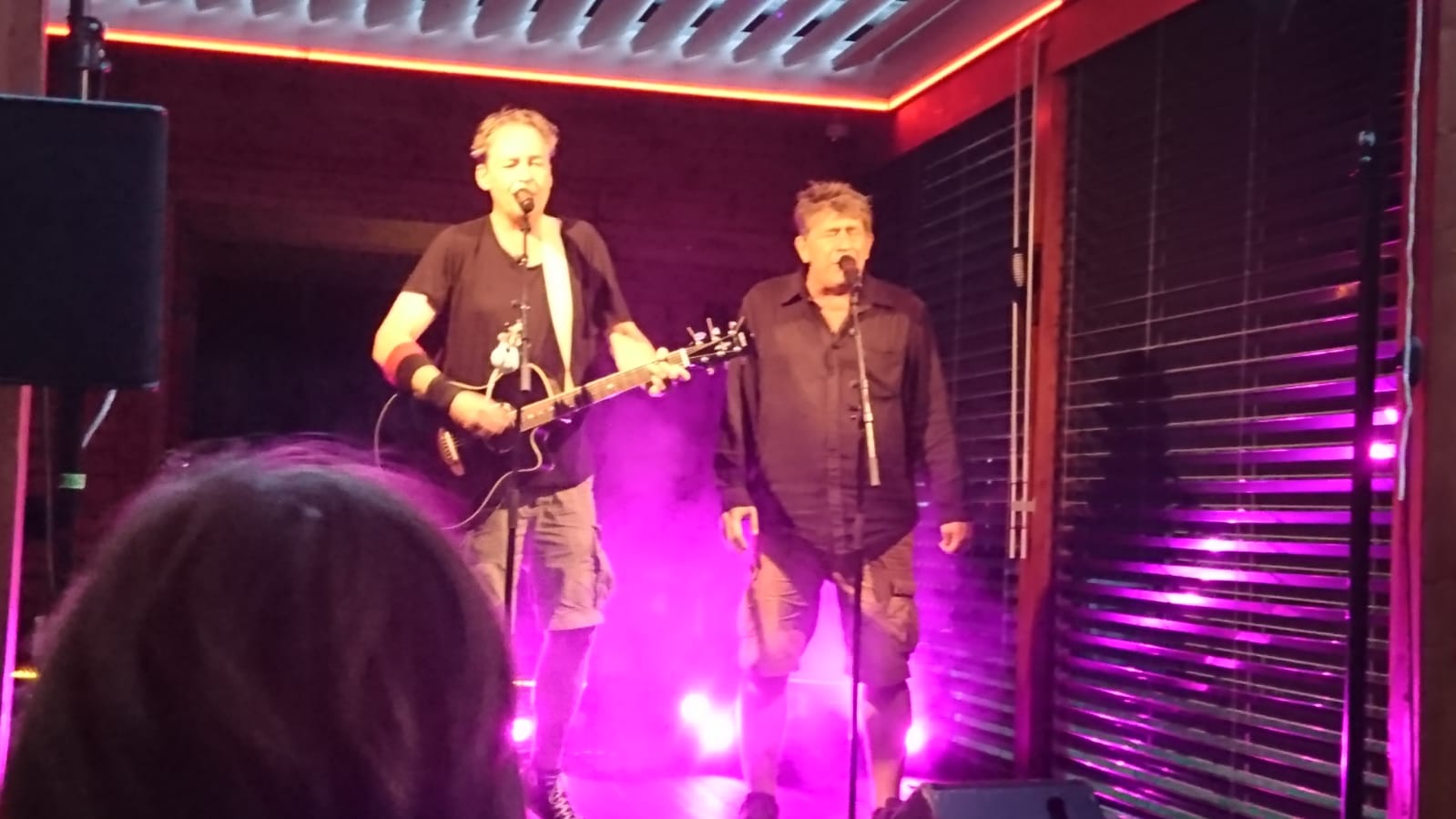 Punk-Rocken. Plötzlich geht’s auf die Bühne. Doc Apollo Muffler schwingt sich hinters Schlagwerk, Doc Makarios begrüßt das ausgehungerte Livemusik-Volk. Doc Pichelstein fühlt sich, als hätte er versehentlich, wie damals in Pirna, einen Keks „mit was drin“ gegessen (Schwäche durch zu viel Flüssigzufuhr? Faustischer Pakt mit dem Bierfass?). Jeder Sidestep unter den zusätzlich heißmachenden Scheinwerfern löst schwitzigen, salzigen Regen aus und zack landet er für wenige Augenblicke im völlig falschen Lied. Fällt bloß keinem auf und als die erste Rumpf-Strophe dran ist, läuft’s prächtig.