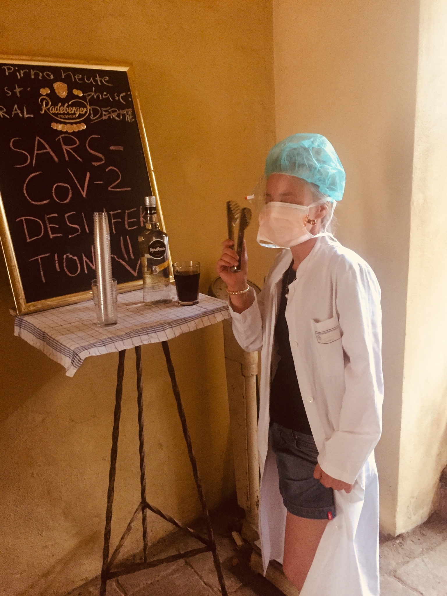 Mit fast derselben Zahlenlage darf das Publikum definiert werden. Statt 150 eingeplanter Gäste schreiten erlesene 50 durch die frische Sonnengartenluft. Ausgezeichnet sind Schlaraffenland-Weine, Biere, Schnäpse und Laufwege. Das Buffett wird händisch von zweierlei Seiten bearbeitet, Kannen voller Desinfektion stehen herum, womit nicht der mitgebrachte Vodka Bulbash gemeint ist - bei all der Perfektion in Corona-Zeiten fehlt nur noch Ministerpräsent Söder, der, angezapft von mutierten Schnaken, all dies mit einem winkenden Lächeln goutiert. Apropos Schnaken – nur eine wird es im Laufe des Abends wagen in einen Doctor hinein zu stechen. Makarios trifft es, Pichelstein bleibt verschont. Ebenso der frisch gekürte Gourmet-Pilot Fürst Fedja (Wein mit Schuss). Zitrusschalen wirken Wunder.