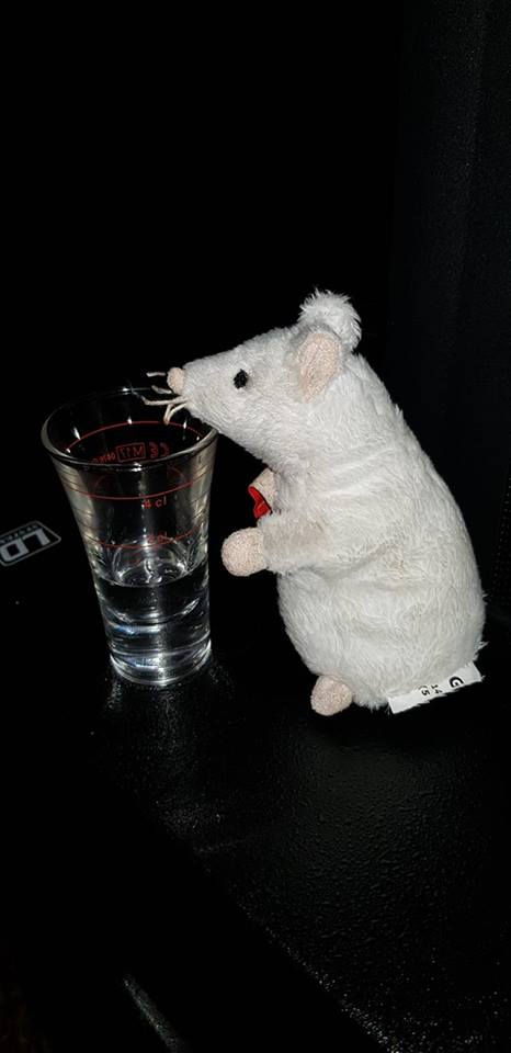 Noch gemahnt der Pleitgeier2 an einen pastoralen Ort. Dass aber bereits die ersten vier Flaschen Bulbash über den Merchtisch gingen, darf nicht verschwiegen werden. Pratajevs Rostocker Freundinnen und Freunde wissen, wie’s geht. Sogar die Ratte aus Stoff, seit einigen Konzerten stete Tourbegleiterin, wird trunken gemacht. Derweil trifft die Oranienburg-Teschendorf-Fraktion ein. In der Mitte ein Meetchen im Jungschwestern-Kleid, flankiert von baumstarken Feldmännern. So muss es sein. Und es gibt ein frisches Doctors-Fotobuch, den Band II, erneut in einzelner Auflage. Inhalt: Auftritte der Doctors im Beisein der Oranienburg-Teschendorf-Fraktion. Schnaps drauf und Widmung rein, wunderbar.