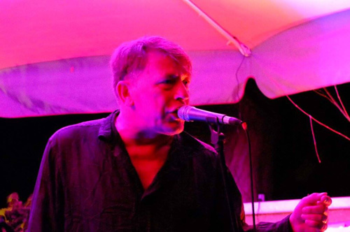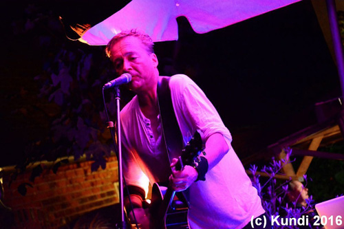Pratajevs Rebellen des Wohlgeschmacks haben sich heute für die dicke Kirschholzgitarre entschieden. Eigentlich der Back-up in Pichelsteins Sammlung. Open Air klingt die aber einfach besser und füttert Makarios‘ hartbuttrige Stimme bestens. Fürst Fedja hält tapfer durch, steht in der Ecke und wirft einen dramatischen Schatten, noch ein wenig unwohl gelitten ob des gestrigen Knobelbecherabends. O-Ton: „Ab um drei spielen die im Café Westen immer Element of Crime, da soll man wohl nach Hause gehen, ins Heim, doch nicht mit mir!“ Die Doctoren rasen derweil mit Vollgas durchs Set; es gibt viele Wortspenden, viel zu erklären über die Geschichte, das Leben Pratajevs. Zeit für pichelsteinsche Trinkpausen bleibt zur Genüge. Mädchen wir Ansteckblumen flirren kreischend über den Hof, Herren prosten sich zu und schmunzeln, das Konzert nimmt seinen Lauf. Dann darf für kurze Zeit pausiert werden. Klatschnass sind die Doctoren, Toasts werden ausgebracht, scheint allen zu gefallen, was bisher geschah. Und dieses Gedankengarn gleich weiter zu spinnen, folgt der zweite Block. Vom „Bösen“ geht es im Ohrwürmer-Trommelfeuer zu den Tierliedern. Ach ja! „Tote Katzen im Wind“: Die Stimmung ist auf dem Siedepunkt, vehement wird in der Beifallsorgie ein Lied über Hunde verlangt. Natürlich, alles dabei, lange nicht gespielt: „Furchtbarer Irrtum“.