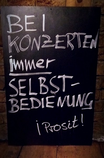Dort angekommen wird durchgeschnauft, werden Drinks geordert, u.a. sehr gesundes Mönchsbier. Betreutes Trinken ist toll und die Bardame wird zum Spitzen-As im Helfersystem. Keine drei Gläser später steht die Bühne, leuchtet Mona Lisas Lächeln unterm Doctoren-Soundcheck umso heller. Der Club füllt sich; die lokale Pratajev-Sektion um Miss Inge A. Polenz gibt sich die Ehre und was haben wir da? Großes Töchterchen, passionierte Breakdancerin, textsicherer als Makarios und Pichelstein zusammen, erstmals bei den Russian Doctors! Da kann man prima am nächsten Tag bei allen angeben. Bei der Oma, auf dem Pausenhof und bei den Lehrerinnen sowieso. Los geht's. Das Intro läuft, die Feldmänner stehen Gitarre und Mikro parat bei Fuße.