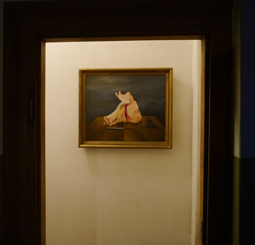 Mit dem Nachbau eines Wladimir Dolomitow-Hutes auf dem Schopfe führt Galerist Schrocke-Mögeleit, begleitet von der bezaubernden Bilderdetektivin Maggi Neubert, die Besucherströme durch die Ausstellungsebenen. Kein Auge, keine Kehle bleibt darunter trocken. Dolomitow, genau, ein Aquarell zeigt nur seinen Hut. Warum das so ist? Schrocke-Mögeleit kann alles erklären: „Ein phantastisches, fast schon surreales Reduktionsbild Pratajevs ist „Der einsame Trinker“. Dieser ist nur durch seinen Hut vertreten und selbst gar nicht zu sehen. Es soll sich hierbei um Wladimir Dolomitow handeln, einen Bergsteiger, der zu seinem Leidwesen nie einen Gipfel erreichte. Schlechtes Wetter zwang ihn, wie er sagte, immer wieder zum Umkehren. Nach zwanzig Jahren erfolglosen Bergsteigens mit immerhin 98 Fehlversuchen wurde er depressiv und verfiel dem Alkohol. Er bat Pratajev daher, ihn bitte nicht in „dem Zustand“ zu malen, was Pratajev tatsächlich respektierte. Aus Mitleid schenkte Pratajev Dolomitow das Gemälde. Dolomitow wiederum verkaufte das Bild direkt an Digitalow, um sich, wie er sagte, eine letzte Gipfelexpedition zu finanzieren. Man griff ihn jedoch 14 Tage später betrunken und völlig mittellos am Schwarzen Meer auf, als er versuchte, als blinder Passagier auf ein Frachtschiff zu gelangen. Das Bild gehörte zu den berühmtesten der Petroperbolsker Sammlung und wurde schon vielfach reproduziert. Aus diesem Bild leitet sich auch der Spruch: „Wenn Du so weiter säufst, bleibt von Dir nur noch ein Hut übrig“, ab. Und wie das Bild genau in die Sammlung gelangte, verrät keine geringere als die strahlend schwarz-rot gewandete Maggi Neubert.