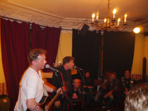 Privat geht’s heute her. Hoch her. Doch das wissen die Doctors noch nicht. Viktoria und Göttergatte bitten zum Stelldichein. Der Grund sind zwei dicht aufeinanderfolgende, runde Geburtsstage im unteren bis mittleren Lebensquartal. Und da die recht russisch-rustikal klingende Vorband sich noch im Soundcheck befindet, heißt es erst mal: Schnapsbar. Rauchen gehen. Schnapsbar. Oh! Das Buffet ist eröffnet! Teller füllen und was es alles gibt und noch mal: Teller füllen. Sehr lecker. Die Meeres- und Flussfreunde im Doctors-Tross loben an dieser Stelle besonders den fischgeräucherten Teil der kulinarischen Prozedur. Petri Heil, Lob und Dank nach Klossa an den lieben Angler in der Dämmerung Marcus dafür.