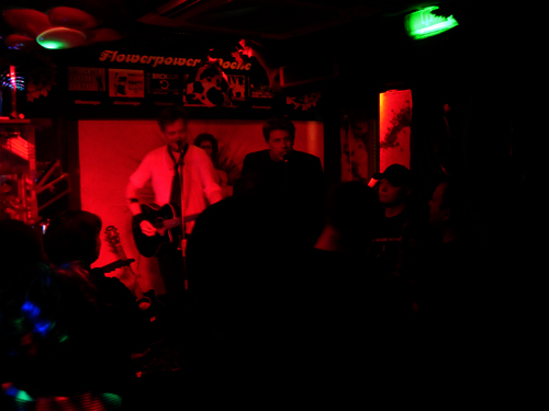Im Flowerpower lautet die Begrüßung der Techniker 1 und 2 ungefähr so: „Tut uns leid, die Bässe in den Frontboxen sind durch. Wir haben aber eine ganz ausgefuchste Idee. Diese beiden Monitore hier schieben wir fußwärts ans Publikum. Da gehen die Bässe, sie stampfen und wandern, und so gleicht sich der Sound wieder aus. Toll, was?“ Beide Doctoren staunen. Sie staunen weiter, weil keine Mikros und nur ein windschiefes Stativ vor Ort sind und staunen umso mehr, als die vor mittlerweile einer Stunde geborene Beschallungsidee an gebrochenen Kabeln, defekten Mischpultspuren, an der großen Unbekannten straff scheitert. Doctor Pichelstein hilft zwar mit eigener Kabeltrommel, aber auch das nützt nichts.